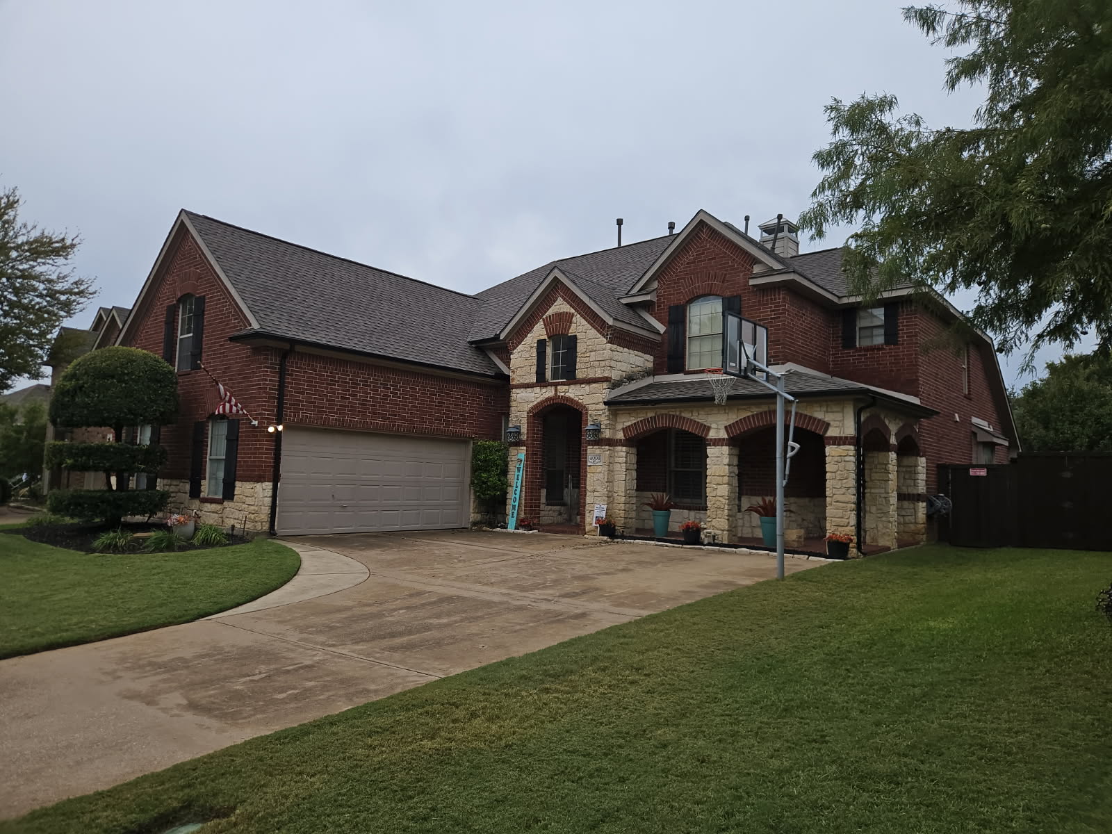 Full Roof and Gutter Replacement using GAF Timberline and Seal - A- Ridge in the color Weathered Wood. Gutter color: Black